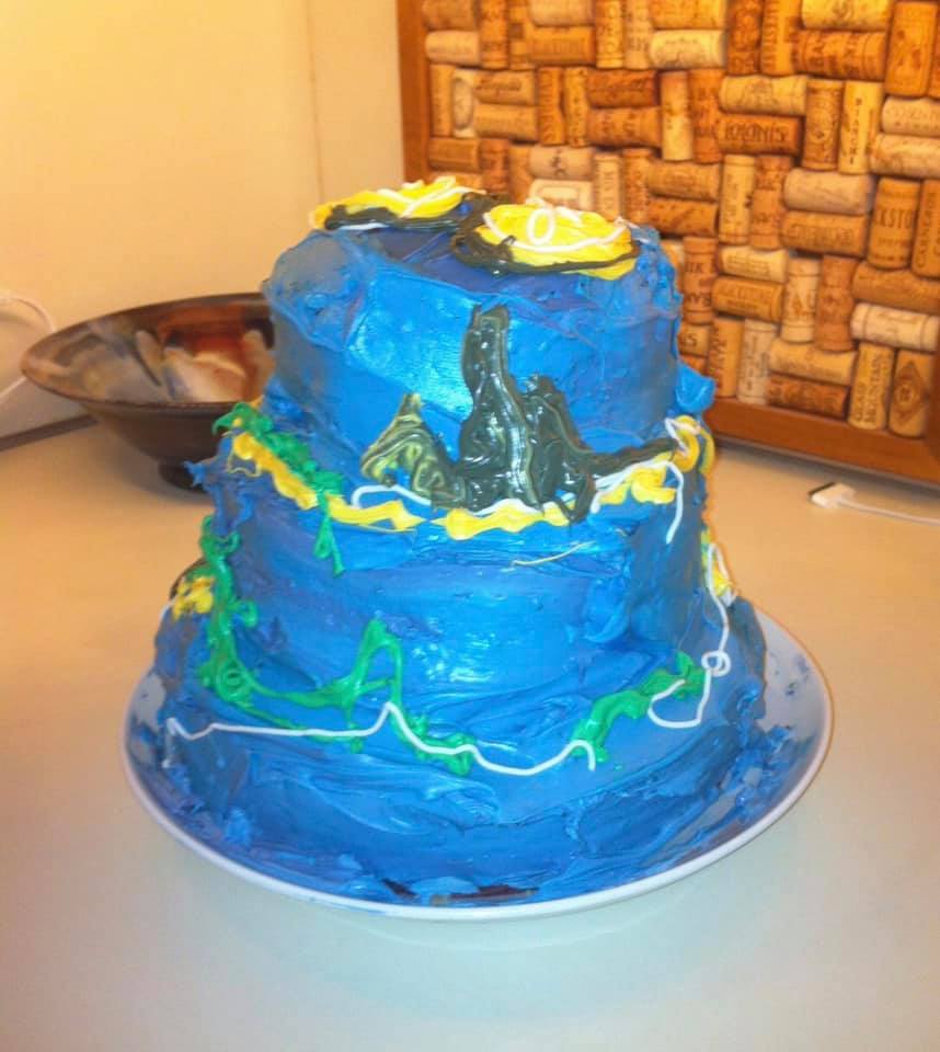 Angela still makes me laugh 25 years later. She recently shared a picture on Facebook of a “Pinterest Fail” – a birthday cake supposedly decorated in the style of Van Gogh’s Starry Night that she had attempted to recreate from a photo downloaded from Pinterest. “I was really trying on that cake, until I wasn’t,” she wrote. “Then it was just laughter and frosting!”